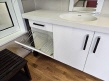 Badmöbel, Ausführung Kunststoff-Dekor weiß glänzend Stollen und Regale in Eiche echtholz gebeizt Waschtisch mit integr. Becken aus Mineralwerkstoff komplett wie Fotos, Gesamtmaß: 159 cm breit x 50 cm tief